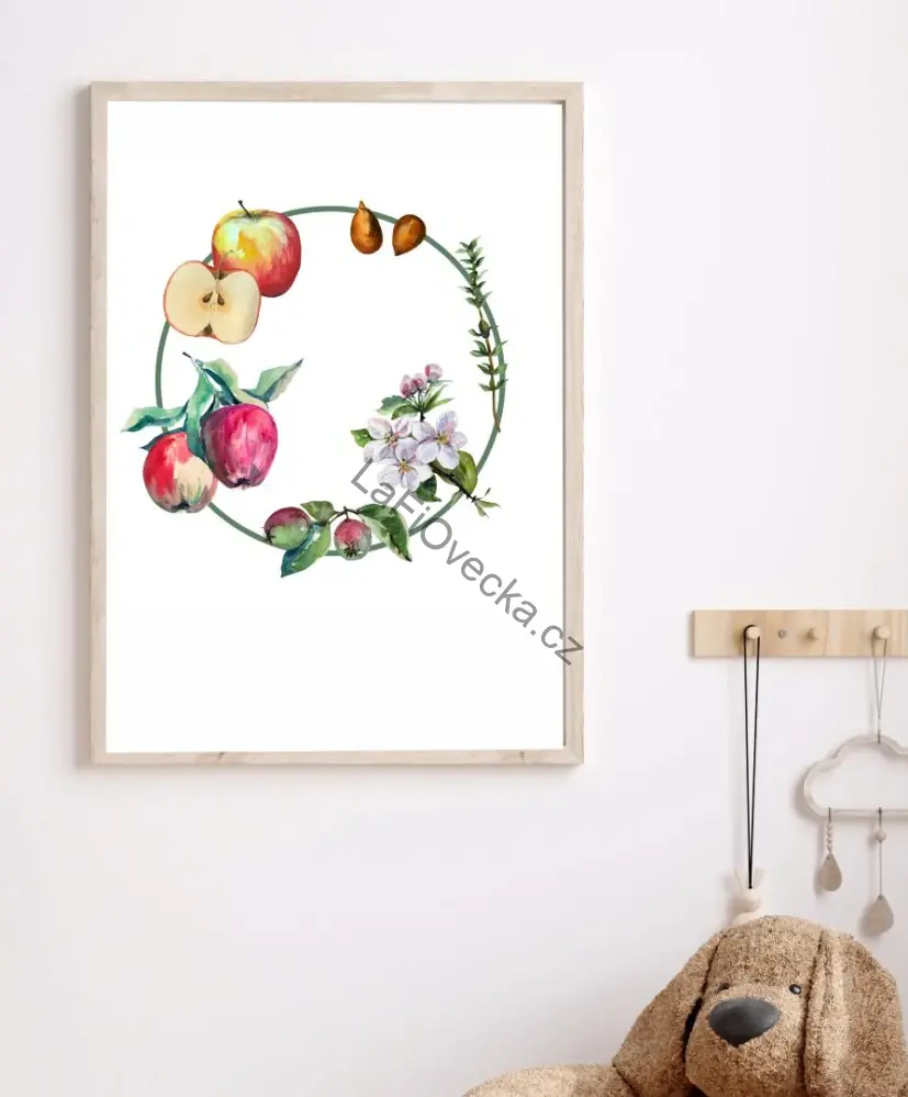 LaFi edukační plakát – Životní cyklus jablko je přehledná obrázková pomůcka pro děti, která pomáhá pochopit, jak se vyvíjí jablko v jednotlivých krocích. Plakát využijete v dětském pokoji, dětských centrech, MŠ i ZŠ – pro povídání, pozorování a rozvoj slovní zásoby.
