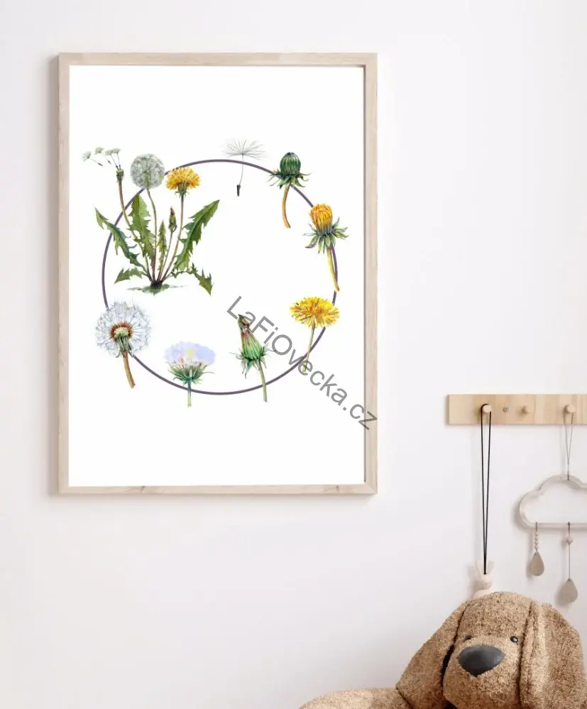 LaFi edukační plakát – Životní cyklus pampeliška je přehledná obrázková pomůcka pro děti, která pomáhá pochopit, jak se vyvíjí pampeliška v jednotlivých krocích. Plakát využijete v dětském pokoji, dětských centrech, MŠ i ZŠ – pro povídání, pozorování a rozvoj slovní zásoby.