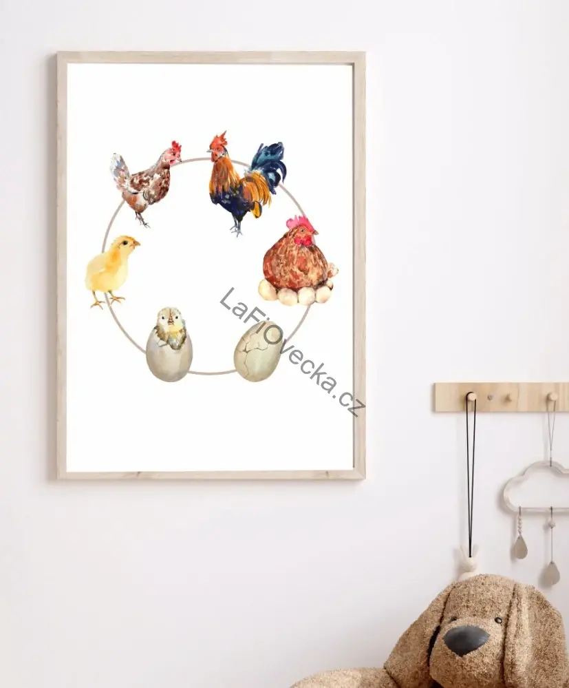 LaFi edukační plakát – Životní cyklus slepice je přehledná obrázková pomůcka pro děti, která pomáhá pochopit, jak se vyvíjí slepice v jednotlivých krocích. Plakát využijete v dětském pokoji, dětských centrech, MŠ i ZŠ – pro povídání, pozorování a rozvoj slovní zásoby.