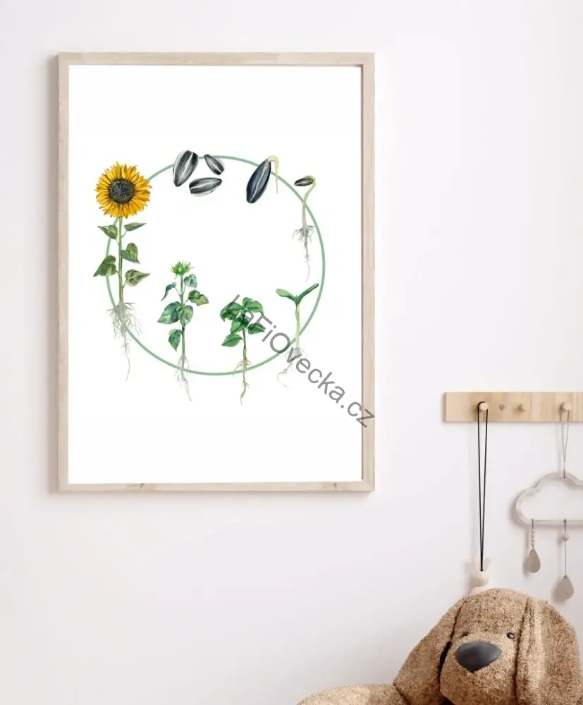 LaFi edukační plakát – Životní cyklus slunečnice je přehledná obrázková pomůcka pro děti, která pomáhá pochopit, jak se vyvíjí slunečnice v jednotlivých krocích. Plakát využijete v dětském pokoji, dětských centrech, MŠ i ZŠ – pro povídání, pozorování a rozvoj slovní zásoby.