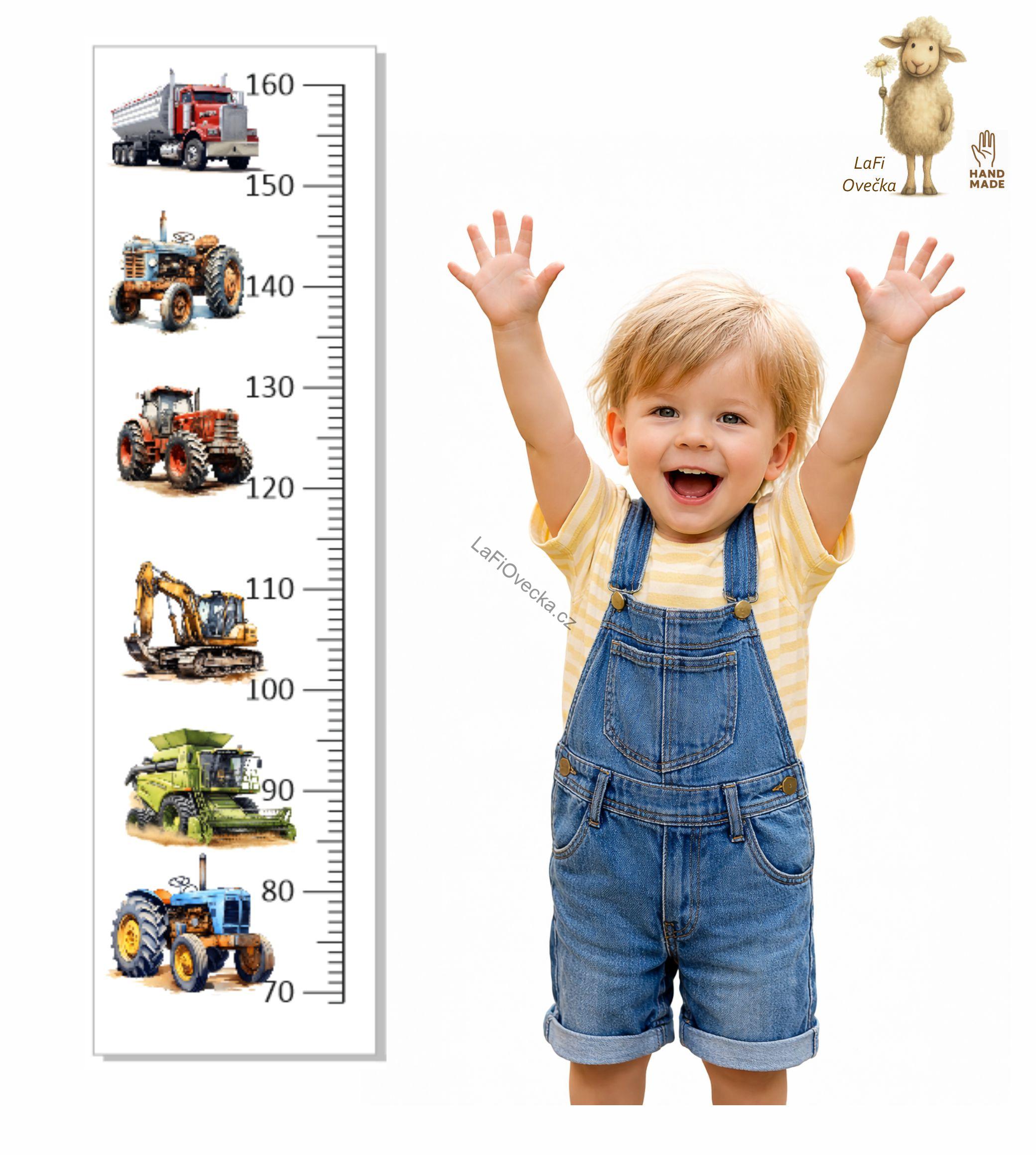 LaFi metr pro děti – Auta, bagry a traktory | samolepka na zeď (100×30 cm)