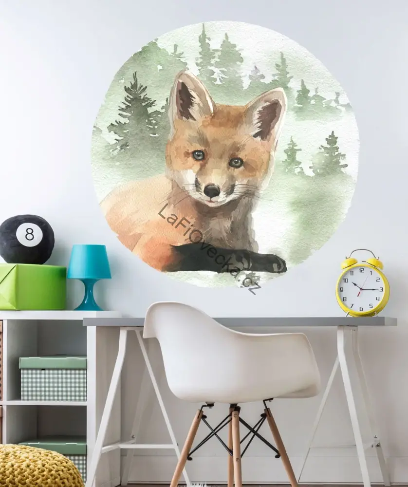 LaFi samolepka na zeď – Liška v lese (kruh) je jemná dekorace do dětského pokoje, která spojuje něžný zvířecí motiv s klidnou přírodní atmosférou. Akvarelově laděná liška v kruhovém provedení působí na zdi měkce, elegantně a nerušivě. Hodí se nad psací stůl, k posteli, do čtecího koutku i na hlavní stěnu pokojíčku.