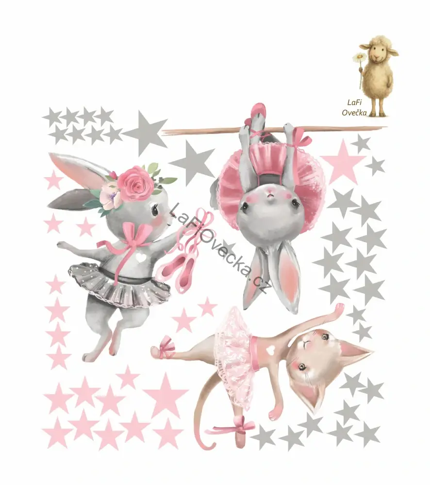 LaFi textilní samolepka na zeď do dětského pokoje – Baletní sada Zajíček a kočička s hvězdičkami
