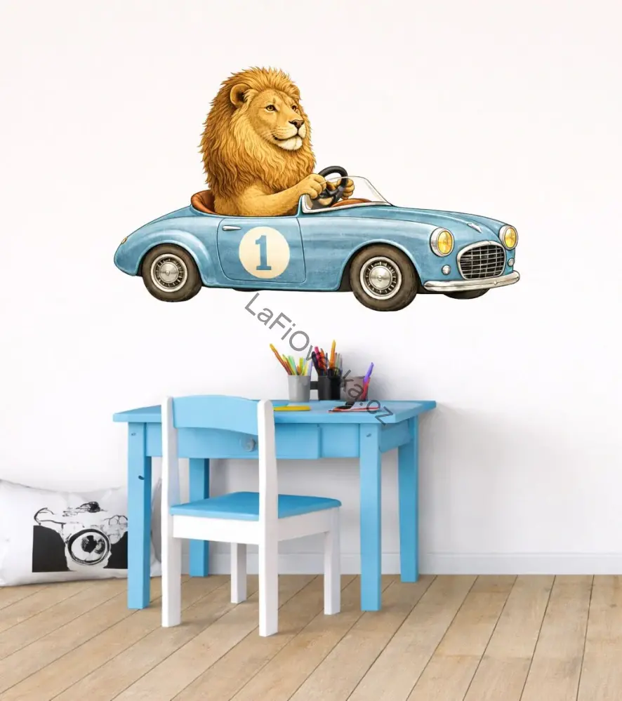 LaFi samolepka na zeď – Lev v modrém autěSkladem/ ks