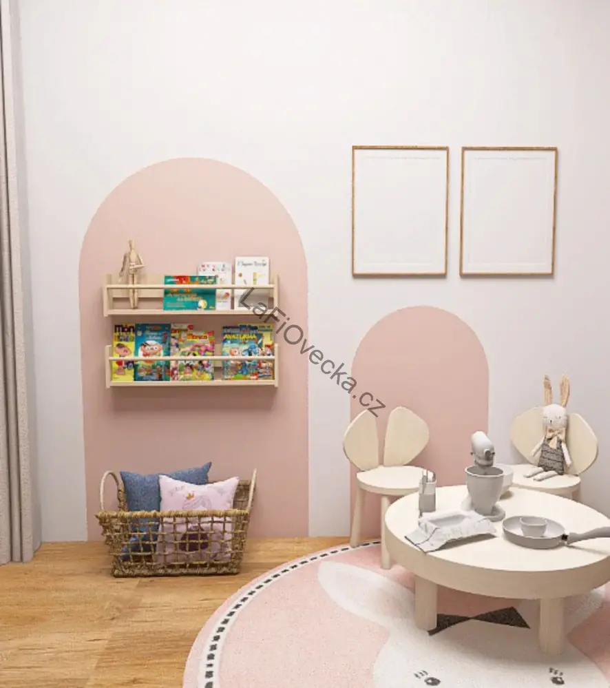 LaFi samolepka na zeď – Oblouk č.1 Meruňková růžová je jednoduchý způsob, jak vytvořit jemný a útulný detail v dětském pokoji. Díky matnému textilnímu povrchu, české výrobě a možnosti úpravy na míru je krásnou i praktickou volbou pro moderní domov.