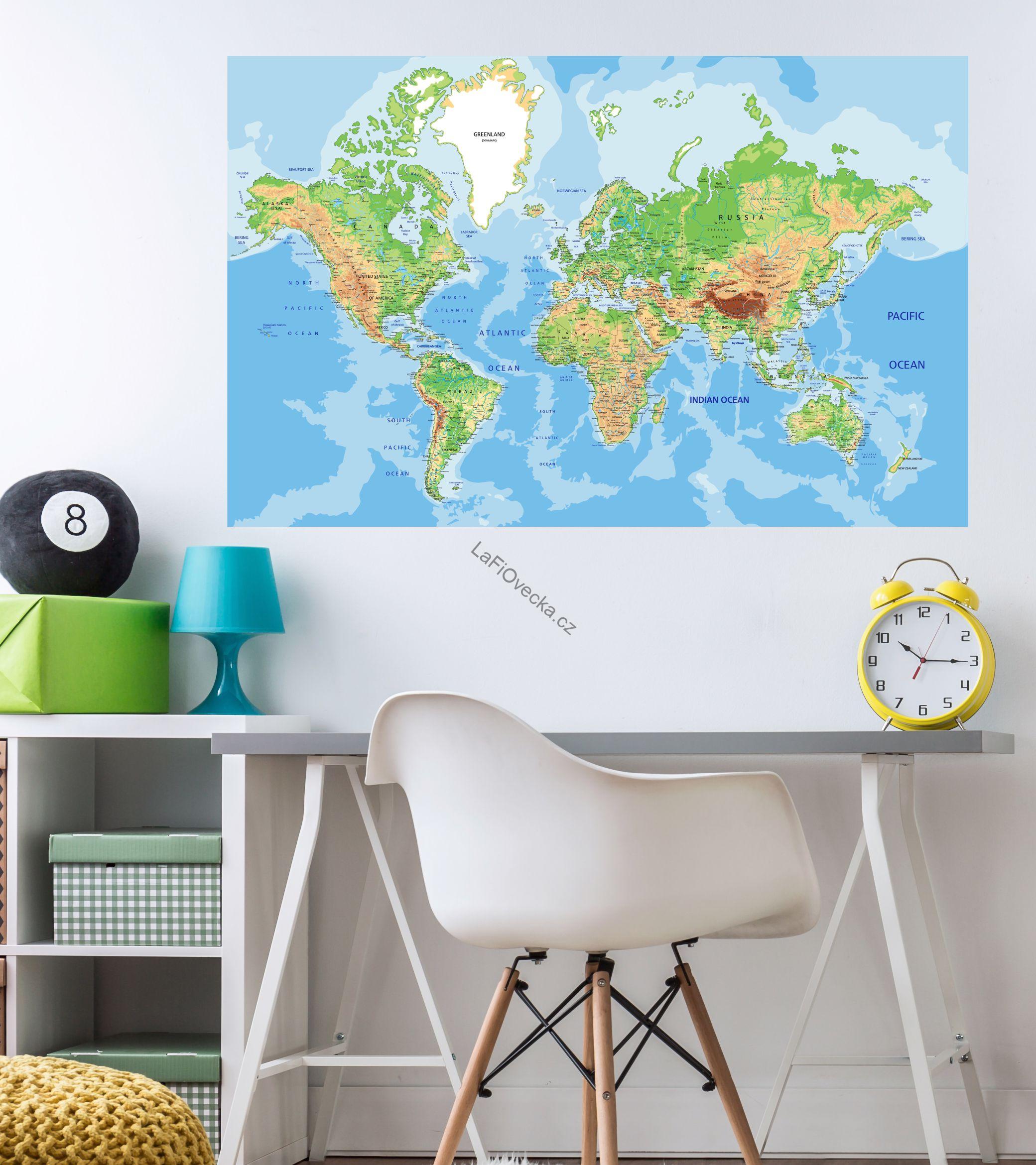 LaFi samolepka na zeď pro děti – Geografie mapa světa | textilní bez PVC | 1 díl